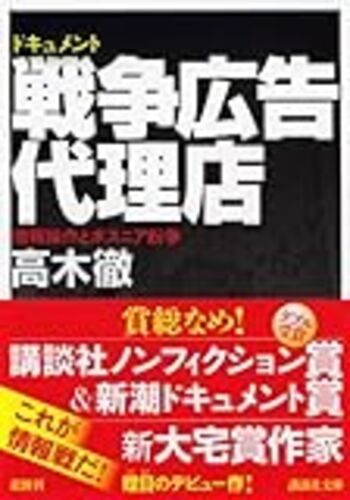 ドキュメント 戦争広告代理店〜情報操作とボスニア紛争 (講談社文庫)作者: 高木徹出版社/メーカー: 講談社発売日: 2005/06/15メディア: 文庫購入: 28人 クリック: 241回この商品を含むブログ (167件) を見るもっとセンセーショナルないかがわしい感じの本か…